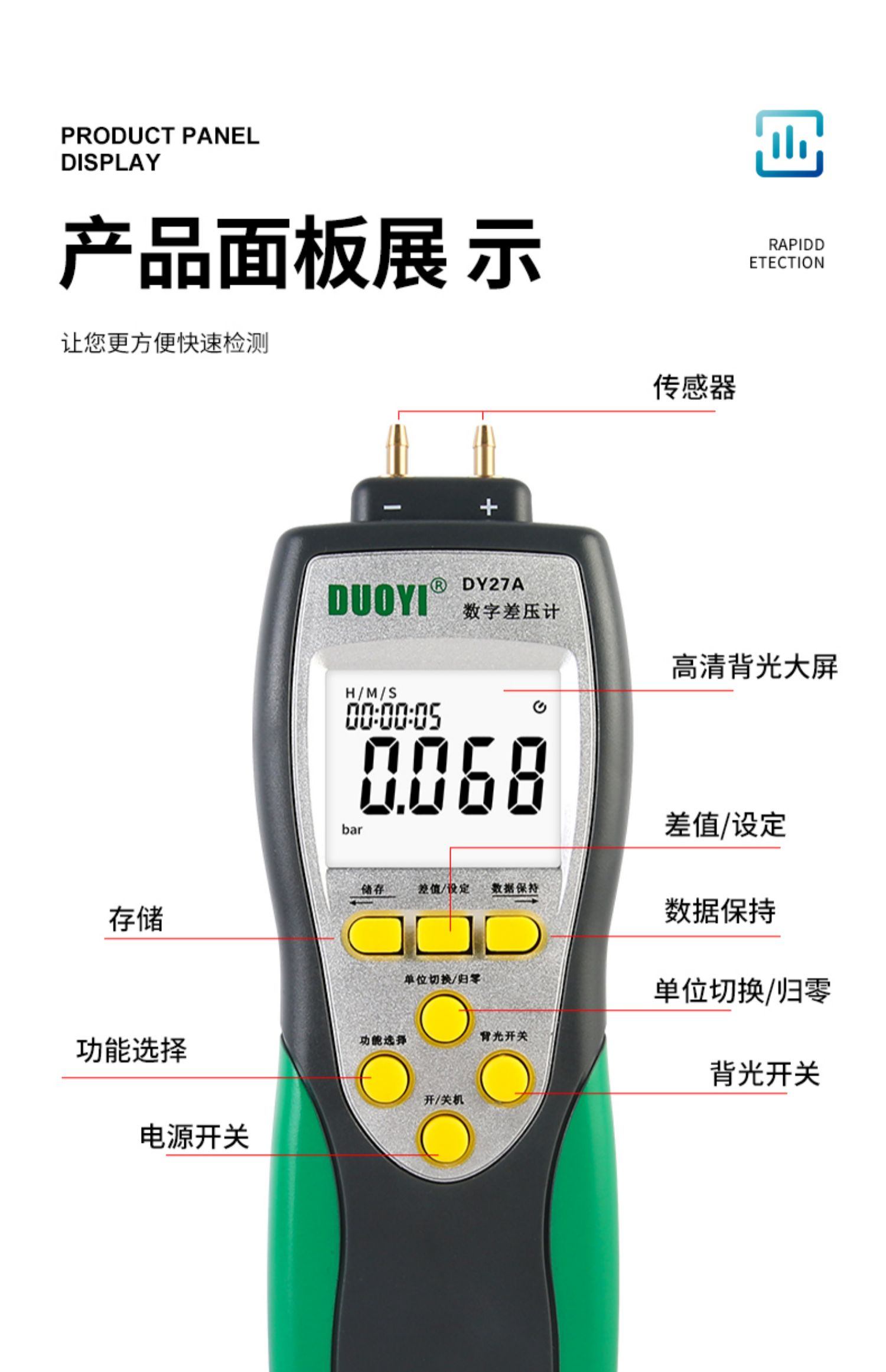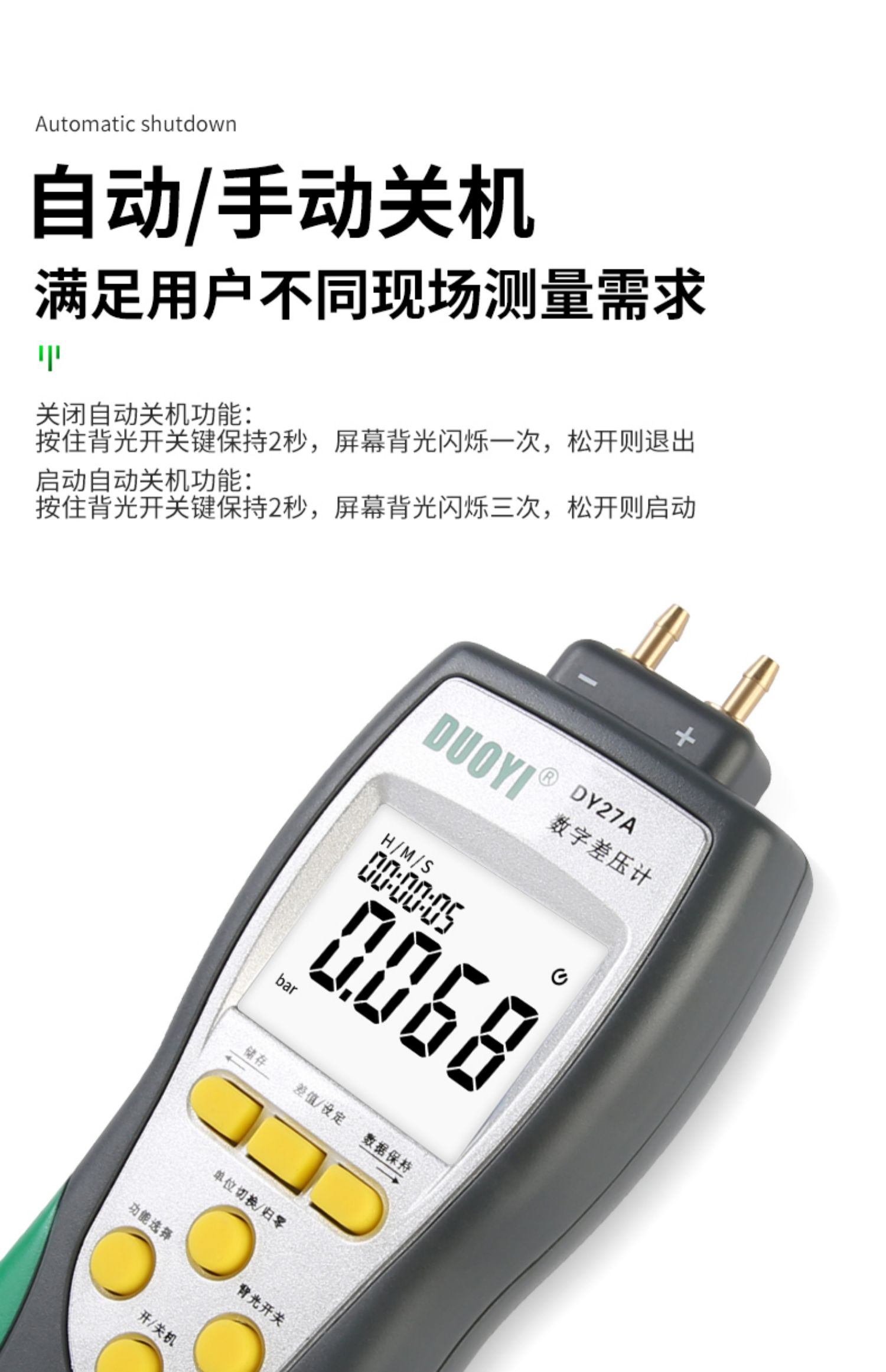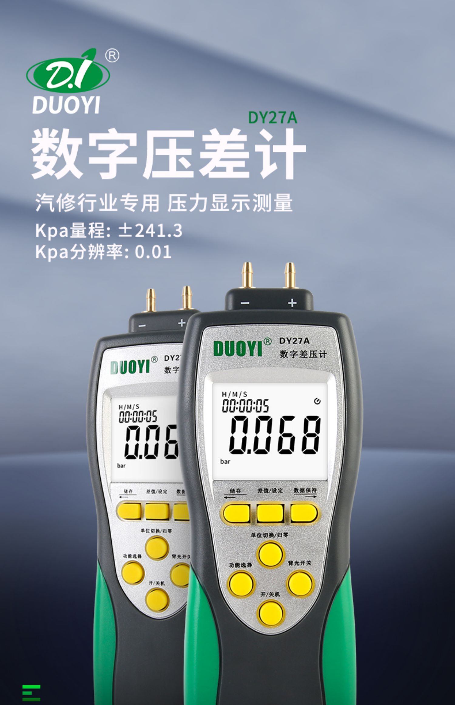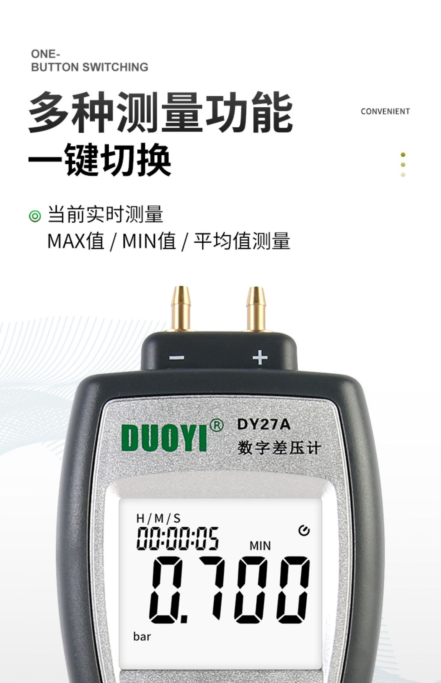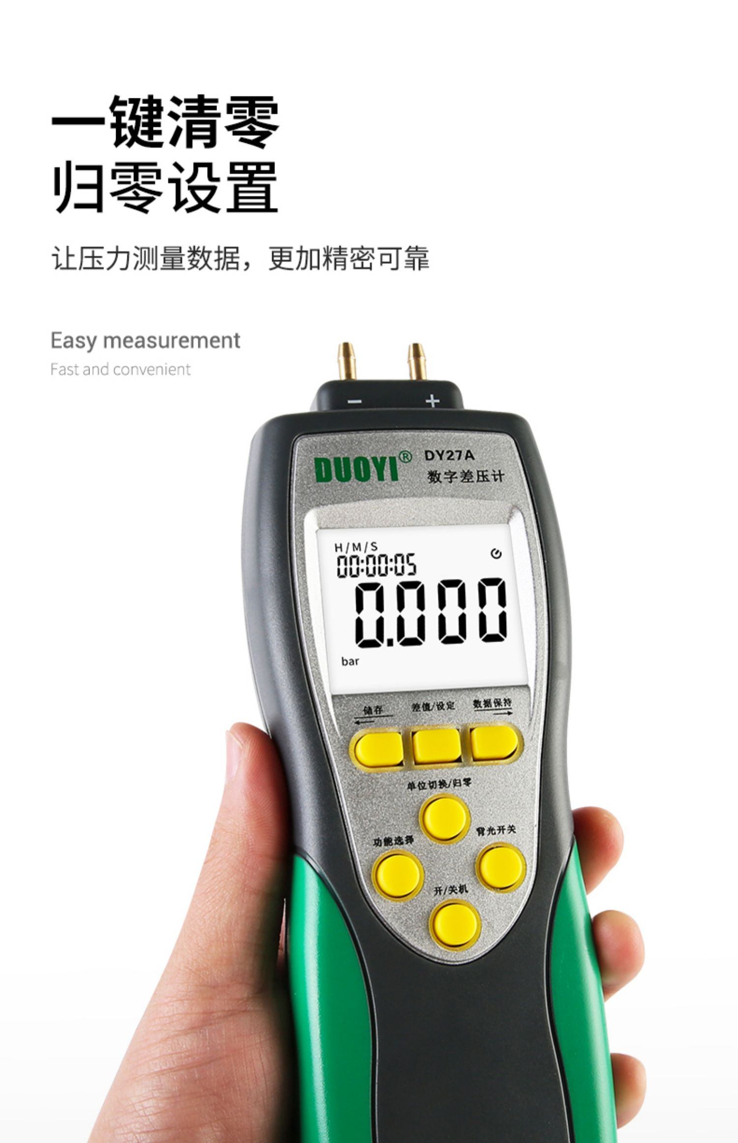 多一DY27A壓力表差數顯微壓差計手持式微壓計氣壓表檢測儀壓差計
