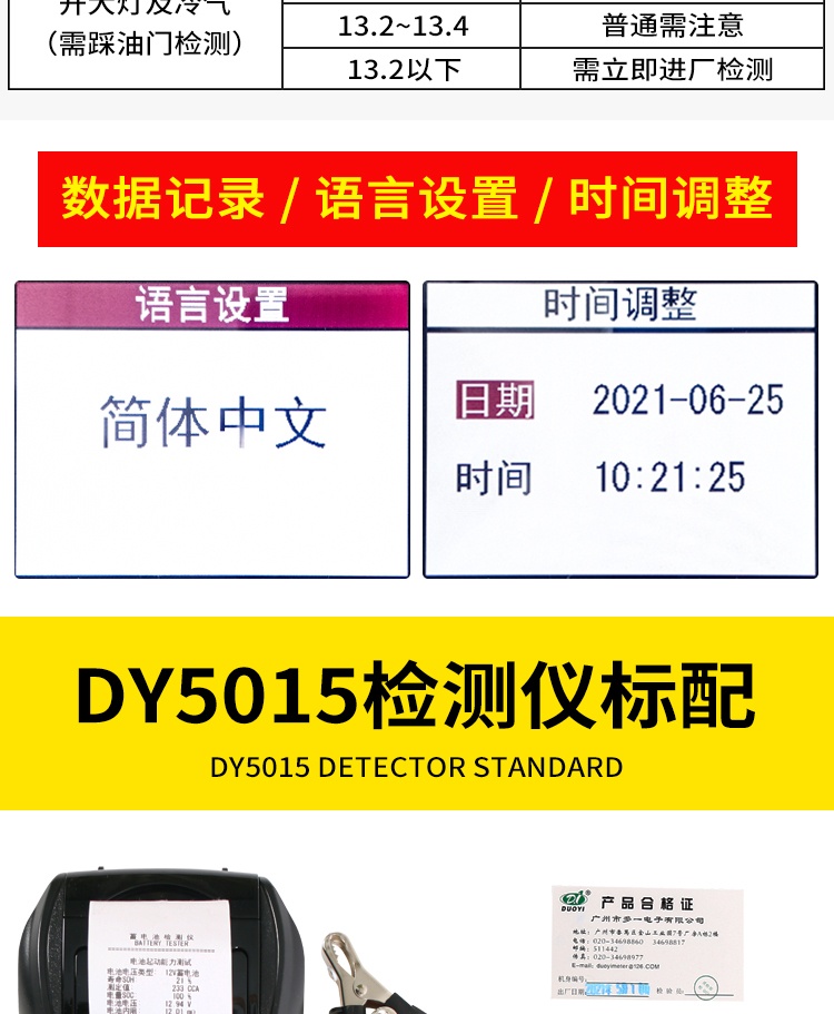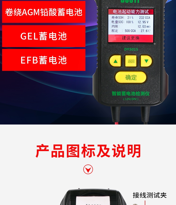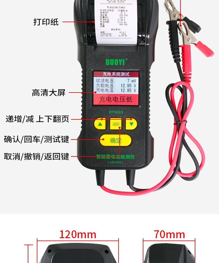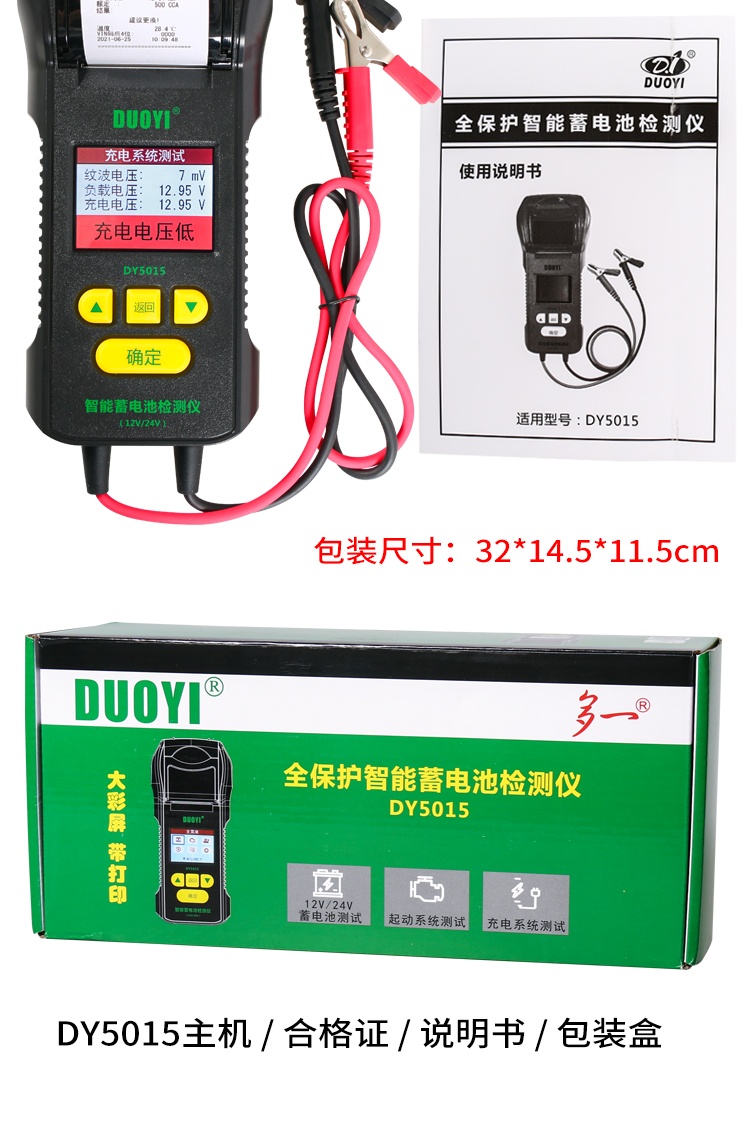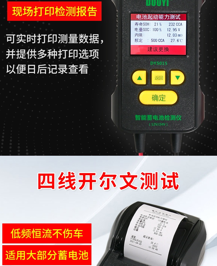 多一DY5015蓄電池檢測儀帶打印汽車電瓶性能測試儀壽命容量內(nèi)阻