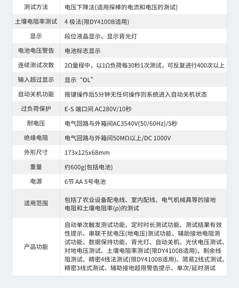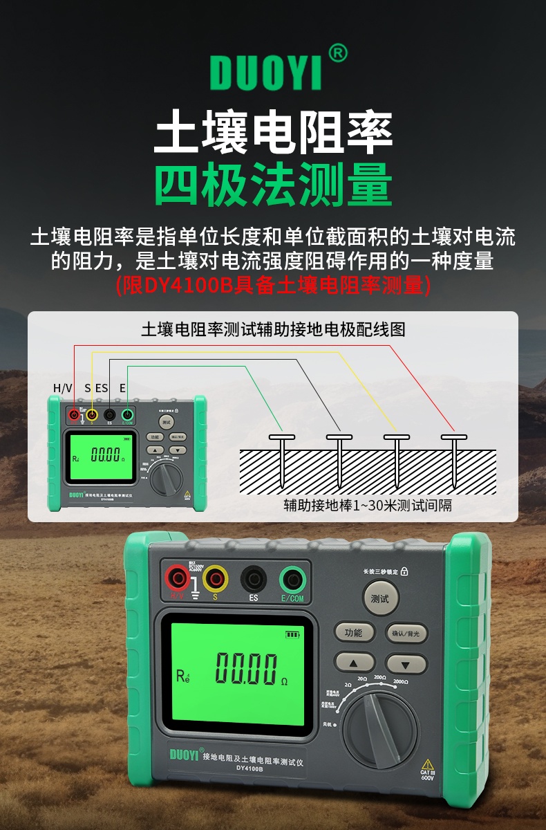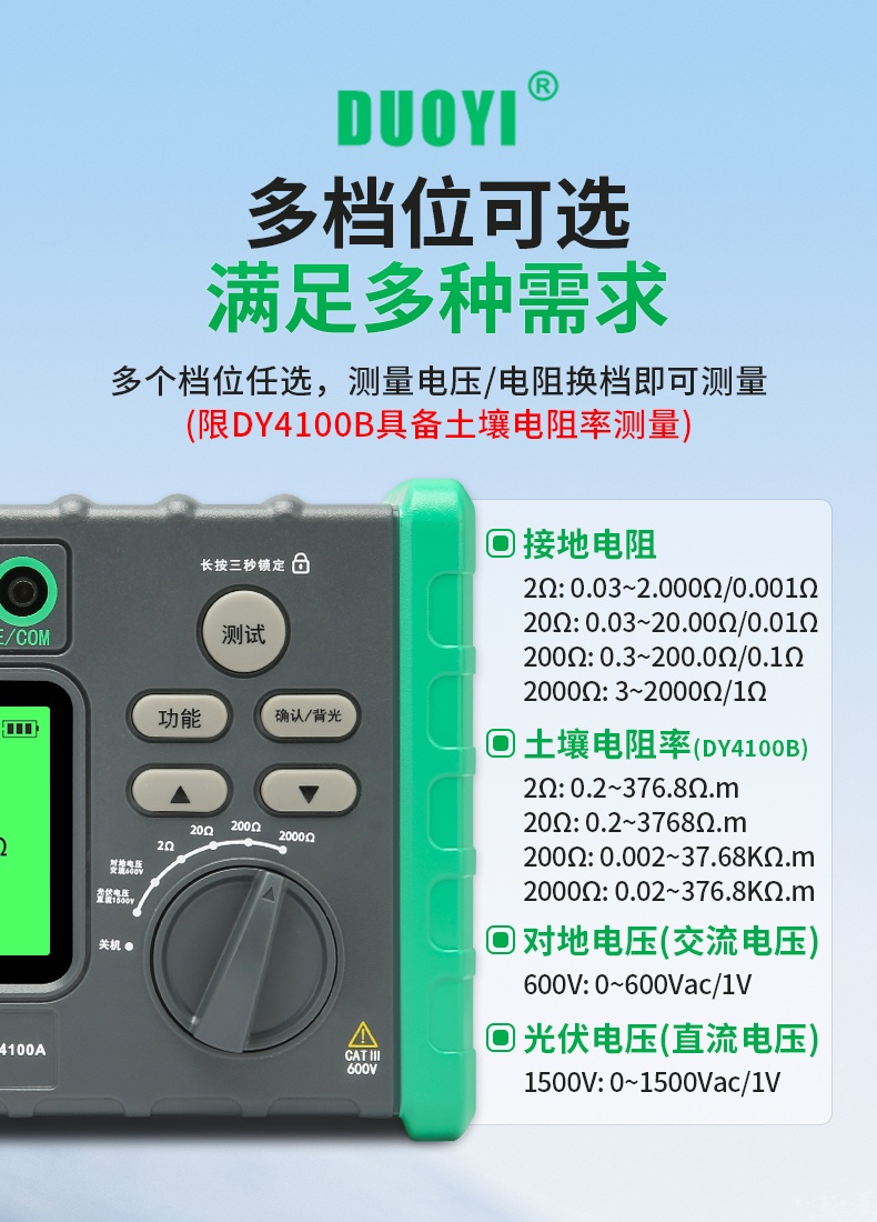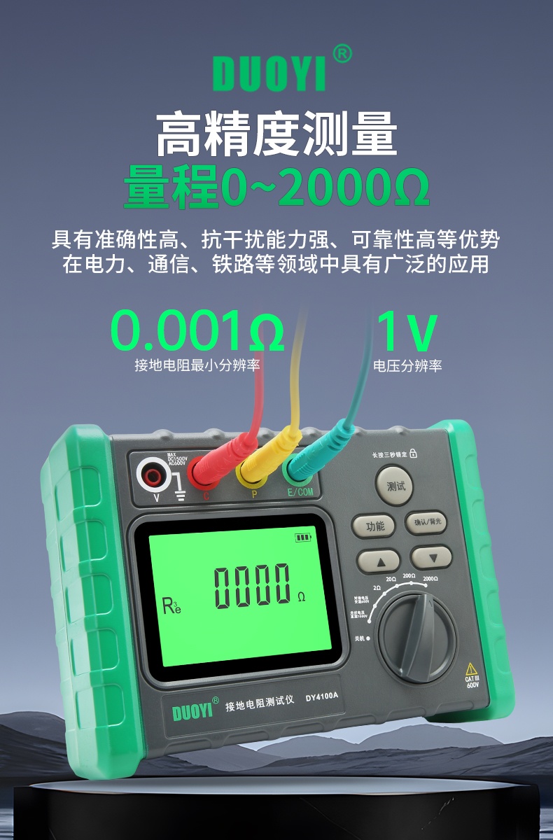 DY4100A/DY4100B接地電阻測(cè)試儀充電樁接地測(cè)量?jī)x光伏電壓防雷電阻儀