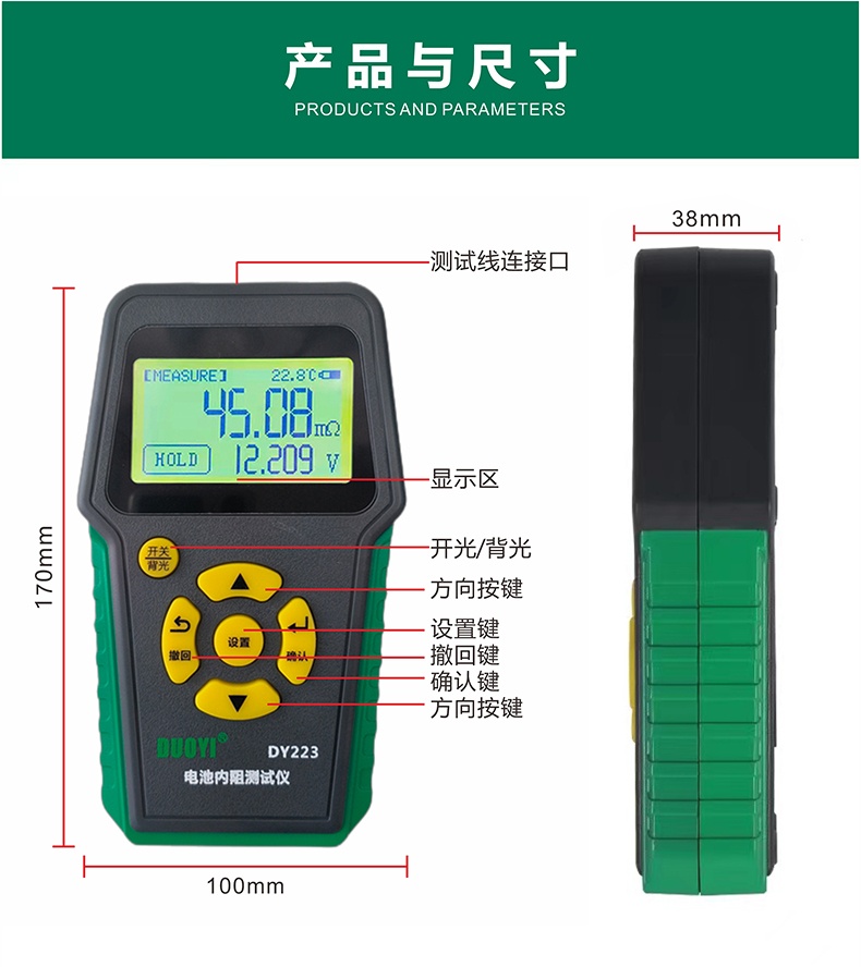 汽車鉛酸蓄電池鋰電池電瓶檢測電壓測量內(nèi)阻檢測儀DY223